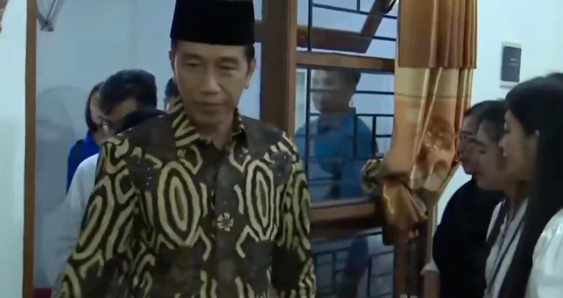 Presiden Jokowi terlihat tiba sekitar pukul 20.30 WIB. Tanpa banyak pengawalan mencolok, beliau datang mengenakan batik lengan panjang, celana hitam, dan peci—penampilan formal tetapi tetap sederhana seperti biasanya.