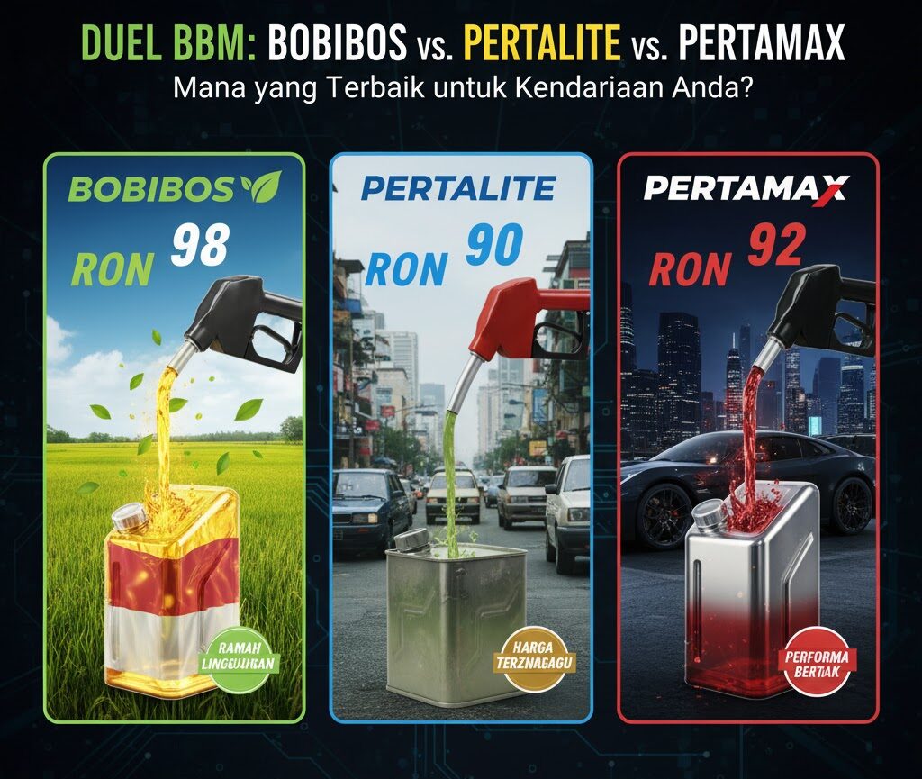 | Aspek Performa | Bobibos (Klaim) | Pertalite (Fakta) | Pertamax (Fakta) |